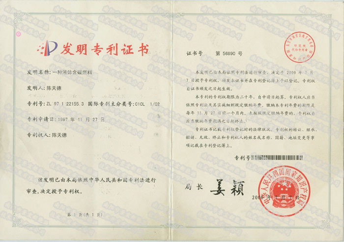 原有添加劑技術(shù)屬我公司董事長陳天德獨有國家發(fā)明專利技術(shù),專利號ZL971221553 ,由于產(chǎn)品技術(shù)優(yōu)化升級,新的專利正在申報中,故此老專利停止續(xù)費,不再保留。